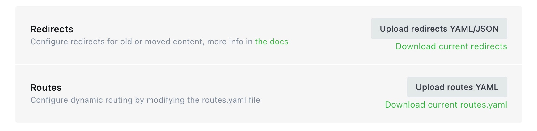 Staying on theLabspage, clickDownload current redirectsto get your redirects file. This will be calledredirects.yamlorredirects.jsondepending on your Ghost version. If you’re using custom routes, clickDownload current routes.yamlto get yourroutes.yamlfile.